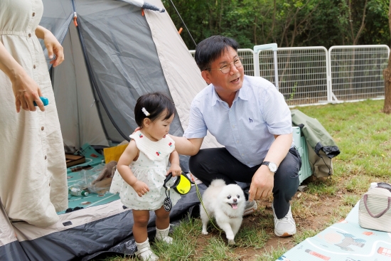 ¡ã ¹Ú°­¼ö ¸¶Æ÷±¸Ã»ÀåÀÌ ÇÑ ¾ÆÀÌ¿Í ¹Ý·Á°ß°ú ÇÔ²² ½Ã°£À» º¸³»¸ç ¹Ý·Áµ¿¹° ģȭ Ä·ÇÎ ¹®È­¸¦ üÇèÇϰí ÀÖ´Ù. ¸¶Æ÷±¸