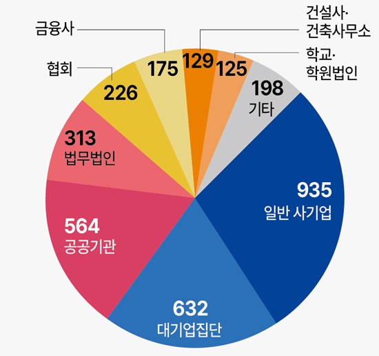 ÅðÁ÷°øÁ÷ÀÚÀÇ Ãë¾÷±â°üÀ» À¯Çüº°·Î º¸¸é ´ë±â¾÷Áý´ÜÀ» Æ÷ÇÔÇÑ ÀÏ¹Ý »ç±â¾÷ü°¡ 47.5%(1567¸í)À¸·Î ÀüüÀÇ Àý¹Ý °¡±îÀ̸¦ Â÷ÁöÇßÀ¸¸ç ÀÌ Áß ´ë±â¾÷Áý´Ü °è¿»ç°¡ 19.2%(632¸í)¿¡ ´ÞÇß´Ù. ÀÌ¾î °ø°ø±â°ü 17.1%(564¸í), ¹ý¹«¹ýÀÎ 9.5%(313¸í), Çùȸ 6.9%(226¸í), ±ÝÀ¶»ç 5.3%(175¸í) ¼øÀ̾ú´Ù.