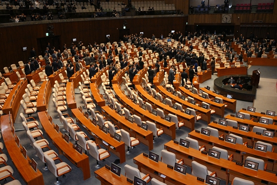 À̳¯ º»È¸ÀÇÀå¿¡´Â ±¹¹ÎÀÇÈû ÀÇ¿øµéÀÌ Á¶Àº¼® Ư°ËÀÇ Ãß°æÈ£ Àü ¿ø³»´ëÇ¥ ±¸¼Ó¿µÀå û±¸¸¦ ¡®Á¤Ä¡º¸º¹¡¯À̶ó ±ÔÁ¤ÇÏ¸ç º¸ÀÌÄàÀ» ¼±¾ðÇØ ¾ß´ç ¼®ÀÌ ºñ¾î ÀÖ¾ú´Ù. ÀÌ ´ëÅë·ÉÀº ¿¬¼³ ÃÊ¹Ý ¡°Á» ÇãÀüÇϱº¿ä¡±¶ó°í ¸»ÇØ ÁÂÁßÀ» ¿ô°Ô Çß´Ù. ¹Ý¸é ´õºÒ¾î¹ÎÁÖ´ç ÀÇ¿øµéÀº ¿¬¼³ ³»³» ȯȣ¿Í ¹Ú¼ö¸¦ º¸³Â´Ù. ÁÖ¿ä ´ë¸ñ¸¶´Ù 30Â÷·Ê ÀÌ»ó ¹Ú¼ö°¡ ÅÍÁ³°í ¿¬¼³ÀÌ ³¡³ µÚ¿¡µµ ÀÌ ´ëÅë·ÉÀº ¿©´ç ÀÇ¿øµé°ú ÀÏÀÏÀÌ ¾Ç¼ö¸¦ ³ª´©¸ç º»È¸ÀÇÀåÀ» ³ª¼¹´Ù.