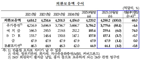 ¿ì¸®³ª¶óÀÇ ¿Üȯº¸À¯¾×Àº 10¿ù¸» ±âÁØ 4288¾ï ´Þ·¯·Î Àü¿ø¸» 4220¾ï ´Þ·¯°ú ºñ±³ÇØ 68¾ï ´Þ·¯·Î Áõ°¡Çß´Ù.