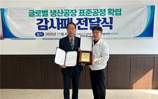 ¡ã ±¹¸³¼ö»ê°úÇпøÀÌ 4ÀÏ µ¿¿ø F&B¿¡ ±Û·Î¹ú »ý»ê°øÀå Ç¥ÁذøÁ¤ È®¸³¿¡ ´ëÇÑ °¨»çÆÐ¸¦ Àü´ÞÇß´Ù. ±¹¸³¼ö»ê°úÇпø