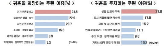 °Ç°ÇÑ »ýȰÀ» À¯ÁöÇϰí ÀÚ¿¬ Ä£ÈÀû ȯ°æ¿¡¼ÀÇ ÈÞ½ÄÀ» Èñ¸ÁÇϱ⠶§¹®À̾ú´Ù. ¹Ý¸é ±ÍÃÌÀ» ÁÖÀúÇÏ´Â ÀÌÀ¯·Î´Â ÀǷᡤ±³À°¡¤¹®È½Ã¼³ µî »ýȰ ÀÎÇÁ¶ó ºÎÁ·, µµ½Ã »ýȰ¿¡ ´ëÇÑ Àͼ÷ÇÔ, ±³Åë ºÒÆí µîÀÌ ²ÅÇû´Ù.