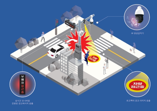 AI ±â¹Ý º¸ÇàÀÚ ¾ÈÀü ½Ã½ºÅÛÀÎ ¡®¿ìȸÀü ¾Ë¸®¹Ì¡¯´Â ¿µ»ó ÀÎ½Ä ±â¼ú·Î Â÷·®°ú º¸ÇàÀÚ, ÀÚÀü°Å¡¤Å±º¸µå µîÀ» ½Ç½Ã°£ °¨ÁöÇØ ¡®Â÷·® Á¢±Ù Áß¡¯ ¡®º¸ÇàÀÚ Á¢±Ù Áß¡¯ °°Àº Á¤º¸¸¦ ¿îÀüÀÚ¿Í º¸ÇàÀÚ¿¡°Ô µ¿½Ã¿¡ ¾Ë·ÁÁØ´Ù. ±³Â÷·Î ÁÖº¯ÀÇ ¹ß±¤´Ù¾Æ¿Àµå(LED) Àü±¤ÆÇ¡¤·Î°íÁ§ÅÍ¡¤½ºÇÇÄ¿ µîÀÌ ¾È³» ÀåÄ¡·Î ¾²ÀδÙ. ±¸´Â ±¸Ã» ¾Õ ±³Â÷·Î µî 31°÷¿¡ ¿ìȸÀü ¾Ë¸®¹Ì¸¦ ¼³Ä¡Çß´Ù.