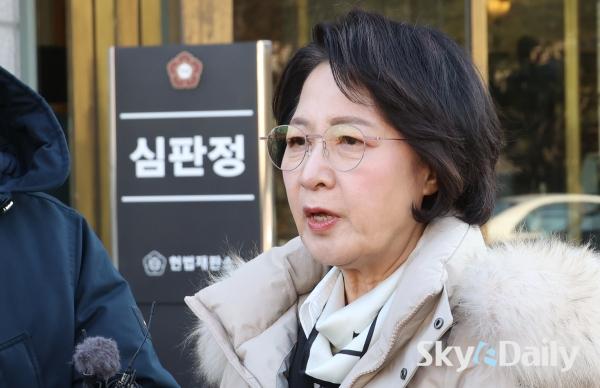 ¡ã Ãß¹Ì¾Ö ±¹È¸ ¹ýÁ¦»ç¹ýÀ§¿øÀåÀÌ 18ÀÏ ¿ÀÈÄ ¼­¿ï Á¾·Î±¸ Çå¹ýÀçÆÇ¼Ò¿¡¼­ ¿­¸° Á¶ÁöÈ£ °æÂûûÀå źÇÙ½ÉÆÇ »ç°Ç ¼±°í¸¦ ¸¶Ä¡°í ³ª¼­¸ç ÃëÀçÁøÀÇ Áú¹®¿¡ ´äÇϰí ÀÖ´Ù. À̳¯ ÇåÀç´Â ÀçÆÇ°ü Àü¿øÀÏÄ¡·Î Á¶ÁöÈ£ °æÂûûÀå ¡®ÆÄ¸é¡¯À» °áÁ¤Çß´Ù. ¹Ú¹Ì³ª ±âÀÚ ¨Ï½ºÄ«À̵¥Àϸ®