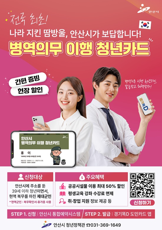 ¡ã ¾È»ê½Ã°¡ ³»³â 1¿ùºÎÅÍ ¡®º´¿ªÀǹ« ÀÌÇà û³âÄ«µå¡¯¸¦ ¿Â¶óÀÎÀ¸·Î ¹ß±ÞÇÑ´Ù. ¾È»ê½Ã