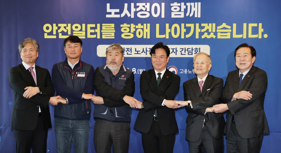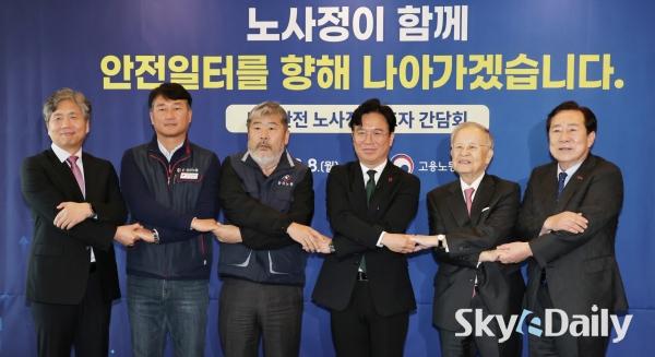 ¡ã 8ÀÏ ¼¿ï Áß±¸ ÇÁ·¹½º¼¾ÅÍ¿¡¼ ¿¸° ¡®³ëµ¿¾ÈÀü ³ë»çÁ¤ ´ëÇ¥ÀÚ °£´ãȸ¡¯¿¡ Âü¼®ÇÑ ³ë»çÁ¤ ´ëÇ¥ÀÚµéÀÌ ¼ÕÀ» ¸ÂÀâ°í ±â³äÃÔ¿µ Çϰí ÀÖ´Ù. ¿ÞÂʺÎÅÍ ·ùÇöö °í¿ë³ëµ¿ºÎ »ê¾÷¾ÈÀüº¸°Çº»ºÎÀå, ¾ç°æ¼ö ¹ÎÁÖ³ëÃÑ À§¿øÀå, ±èµ¿¸í Çѱ¹³ëÃÑ À§¿øÀå, ±è¿µÈÆ °í¿ë³ëµ¿ºÎ Àå°ü, ¼Õ°æ½Ä Çѱ¹°æ¿µÀÚÃÑÇùȸ ȸÀå, ±è±â¹® Áß¼Ò±â¾÷Áß¾Óȸ ȸÀå. ¹Ú¹Ì³ª ±âÀÚ ¨Ï½ºÄ«À̵¥Àϸ®