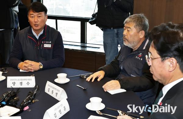 ¡ã ±èµ¿¸í(¿ÞÂÊ) Çѱ¹³ëÃÑ À§¿øÀå°ú ¾ç°æ¼ö ¹ÎÁÖ³ëÃÑ À§¿øÀåÀÌ ¾Ç¼öÇϰí ÀÖ´Ù. ¹Ú¹Ì³ª ±âÀÚ ¨Ï½ºÄ«À̵¥Àϸ®