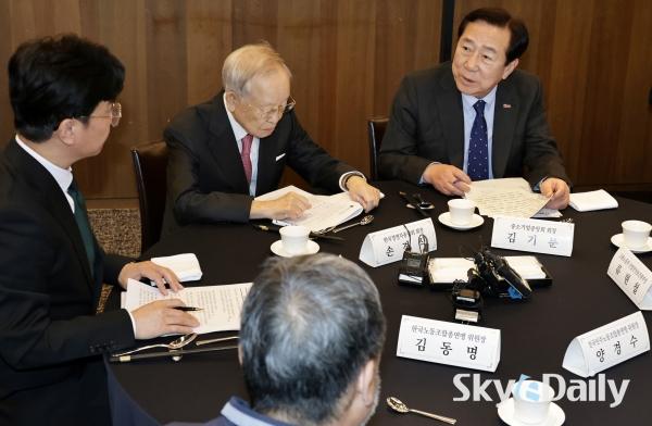 ¡ã ±èµ¿¸í(¿ÞÂÊ) Çѱ¹³ëÃÑ À§¿øÀå°ú ¼Õ°æ½Ä Çѱ¹°æÃÑ È¸ÀåÀÌ ´ëÈÇϰí ÀÖ´Ù.