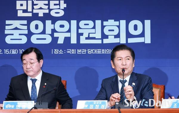 ¡ã Á¤Ã»·¡ ´õºÒ¾î¹ÎÁÖ´ç ´ëÇ¥°¡ 15ÀÏ ±¹È¸¿¡¼­ ¿­¸° Áß¾ÓÀ§¿øÈ¸ÀÇ¿¡ Âü¼®ÇØ ¸ðµÎ¹ß¾ðÀ» Çϰí ÀÖ´Ù. Á¤ ´ëÇ¥´Â À̳¯ ±¹¹ÎÀÇÈûÀÇ ¡®ÅëÀϱ³ Ư°Ë¡¯ ÃßÁø ÁÖÀå¿¡ ´ëÇØ ¡°Àý´ë ¼ö¿ë ºÒ°¡´ÉÇÏ´Ù¡±´Â ÀÔÀåÀ» ¹àÇû´Ù. ÀÌÁ¾¿ø ±âÀÚ ¨Ï½ºÄ«À̵¥Àϸ®