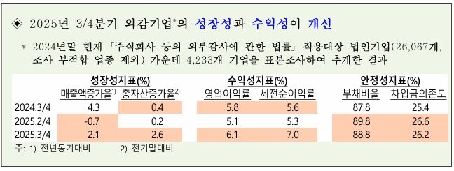 ¿ÜºÎ°¨»ç ´ë»ó ±â¾÷ÀÇ °æ¿µÁöÇ¥°¡ ¿ÃÇØ 3ºÐ±â µé¾î ¶Ñ·ÇÇÑ °³¼± È帧À» º¸¿´´Ù.