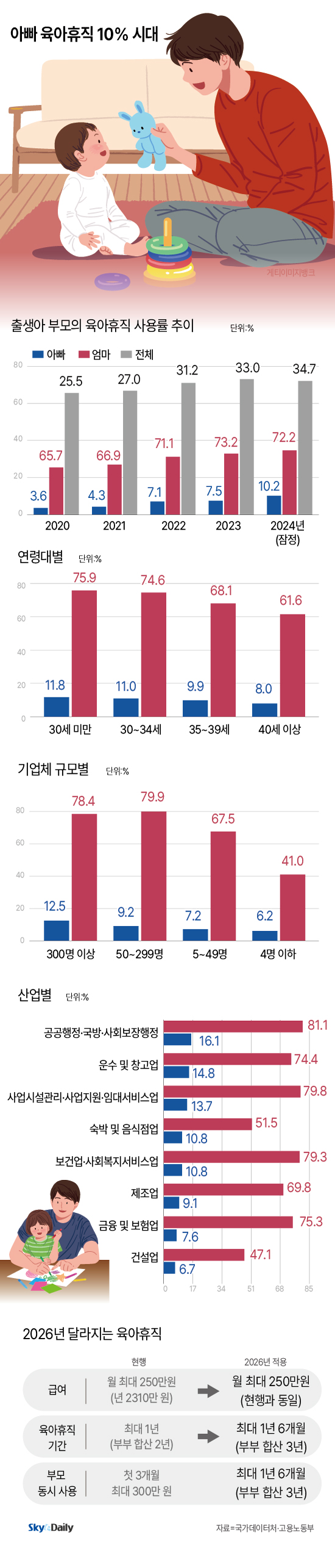 ƯÈ÷ ¾Æºü À°¾ÆÈÞÁ÷ÀÚ´Â 6¸¸117¸íÀ¸·Î óÀ½ 6¸¸ ¸íÀ» ³ÑÀ¸¸ç »ç¿ë·üµµ 10%¸¦ µ¹ÆÄÇß´Ù. ¹Ý¸é ¾ö¸¶ À°¾ÆÈÞÁ÷ÀÚ´Â 14¸¸6õ109¸íÀ¸·Î ¼ÒÆø °¨¼ÒÇß´Ù. ÀüüÀÇ 70.8%´Â ¾ö¸¶, 29.2%´Â ¾Æºü·Î, À°¾ÆÈÞÁ÷ÀÌ ¾ö¸¶ Á߽ɿ¡¼ ºÎ¸ð °øµ¿À¸·Î À̵¿ÇÏ´Â È帧ÀÌ ³ªÅ¸³ª°í ÀÖ´Ù.
