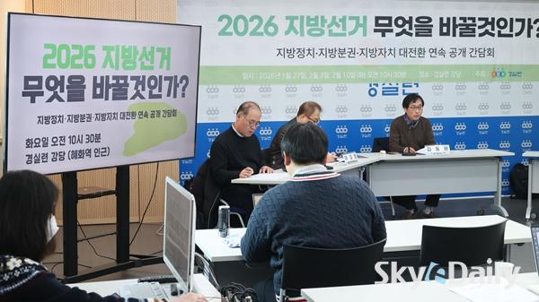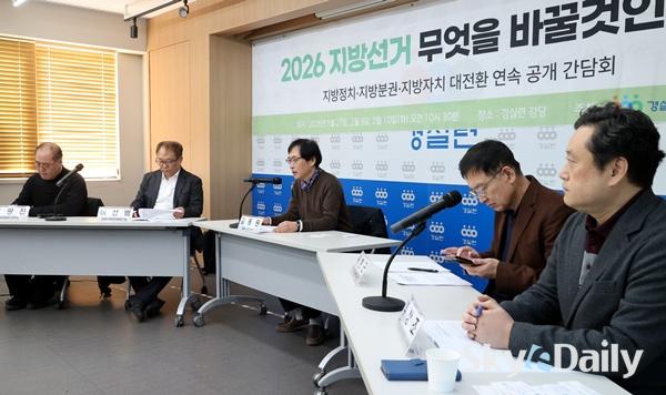 ¡ã °æ½Ç·ÃÀÌ 3ÀÏ ¡®Áö¹æºÐ±Ç, ÇàÁ¤ÅëÇÕÀ» ³Ñ¾î ½ÇÁúÀû ±ÇÇÑ À̾çÀ¸·Î¡¯¸¦ ÁÖÁ¦·Î °£´ãȸ¸¦ ÁøÇàÇß½À´Ï´Ù. À̳¯ °£´ãȸ´Â Áö¹æ¼±°Å¸¦ ¾ÕµÎ°í ÁøÇà ÁßÀÎ ÇàÁ¤ÅëÇÕ¿¡ ´ëÇØ ÀǰßÀ» ±³È¯Çϰí, ½ÇÁúÀûÀÎ Áö¹æºÐ±Ç ¹æ¾ÈÀº ¹«¾ùÀÎÁö µî¿¡ ´ëÇØ ³íÀÇÇß´Ù. ÀÌÁ¾¿ø ±âÀÚ ¨Ï½ºÄ«À̵¥Àϸ®