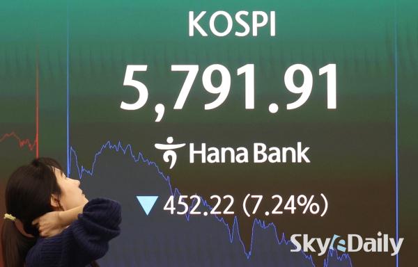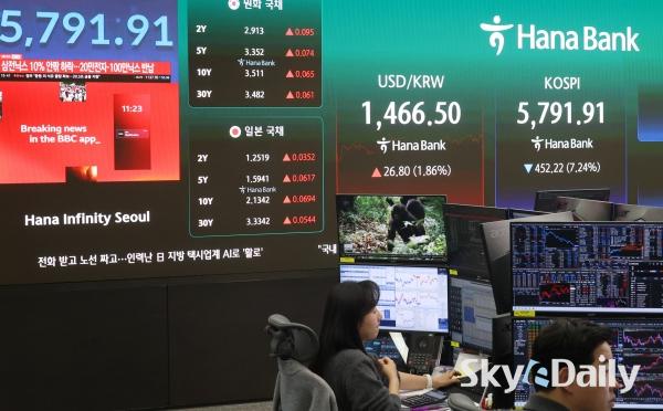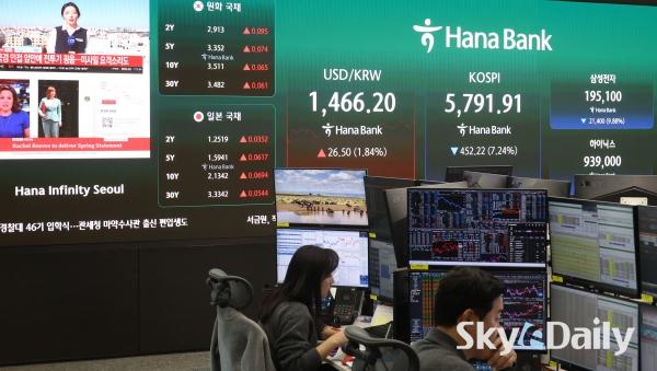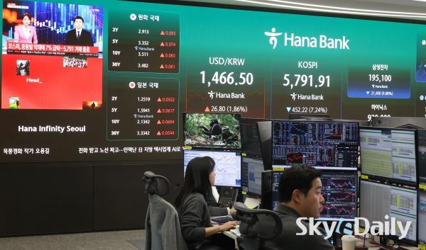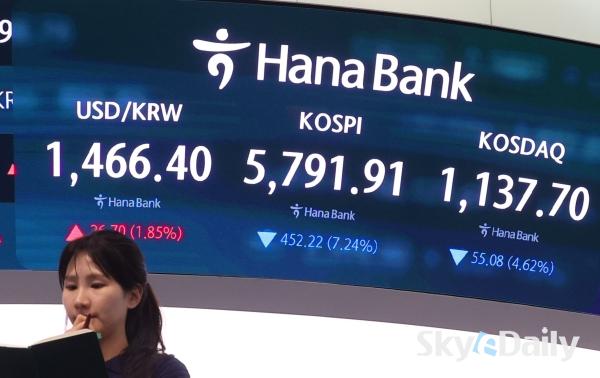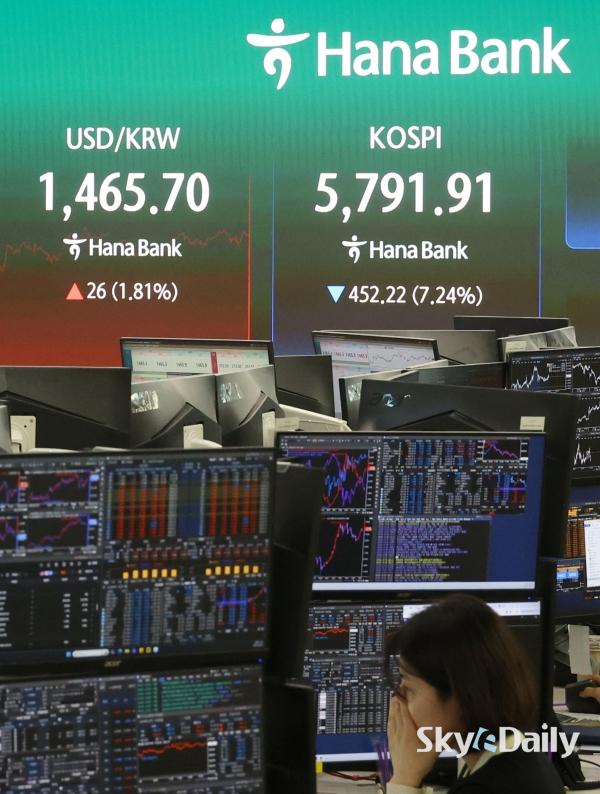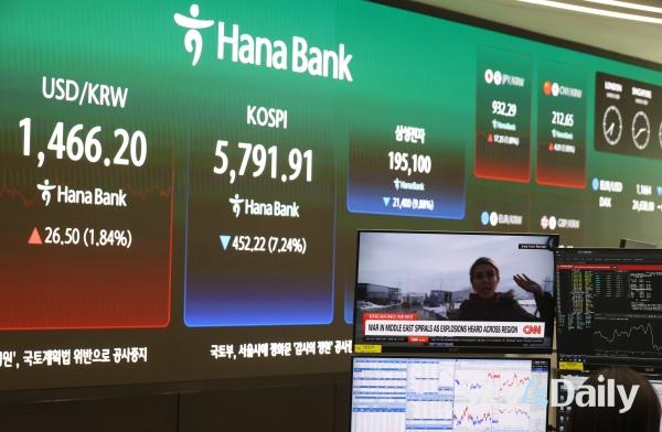 ¡ã ¹Ì±¹°ú À̶õ ÀüÀï ¿©ÆÄ·Î ±¹³» Áõ½Ã°¡ ±Þ¶ôÇÑ 3ÀÏ ¼¿ï Áß±¸ ÇϳªÀºÇà º»Á¡ µô¸µ·ë Àü±¤ÆÇ¿¡ Á¾°¡°¡ Ç¥½ÃµÇ°í ÀÖ´Ù. À̳¯ ÄÚ½ºÇÇ Áö¼ö´Â Àü °Å·¡ÀÏ ´ëºñ 452.22Æ÷ÀÎÆ®(7.24%) ³»¸° 5,791.91¿¡, ÄÚ½º´ÚÀº 55.08Æ÷ÀÎÆ®(4.62%) ³»¸° 1,137.70¿¡ ÀåÀ» ¸¶°¨Çß´Ù. ¹Ú¹Ì³ª ±âÀÚ ¨Ï½ºÄ«À̵¥Àϸ®