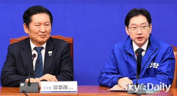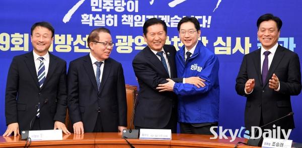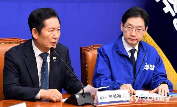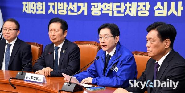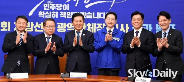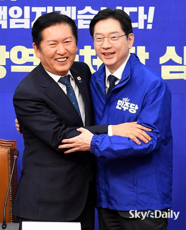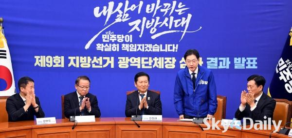 ¡ã 5ÀÏ ¼¿ï ¿©Àǵµ ±¹È¸¿¡¼ ¿¸° ´õºÒ¾î¹ÎÁÖ´ç °øÃµ ½É»ç °á°ú ¹ßÇ¥¿¡¼ Á¤Ã»·¡(¿ÞÂÊ) ´ëÇ¥°¡ ±è°æ¼ö Áö¹æ½Ã´ëÀ§¿øÀå°ú ¾Ç¼öÇϰí ÀÖ´Ù. À̳¯ ´õºÒ¾î¹ÎÁÖ´çÀº 6¡¤3 Áö¹æ¼±°Å ¡®3È£ ´Ü¼ö°øÃµ¡¯À¸·Î ±è°æ¼ö ´ëÅë·É Á÷¼Ó Áö¹æ½Ã´ëÀ§¿øÈ¸ À§¿øÀåÀ» ¼±Á¤Çß´Ù. ¹Ú¹Ì³ª ±âÀÚ ¨Ï½ºÄ«À̵¥Àϸ®