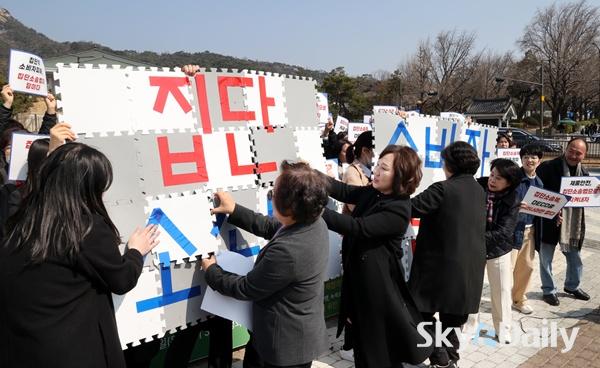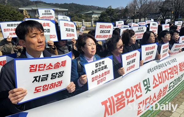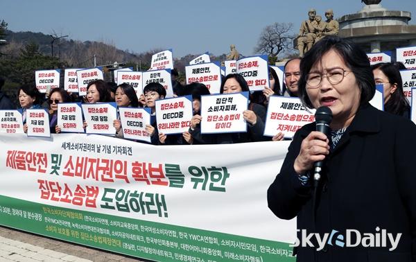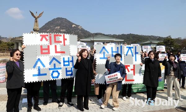 ¡ã ¼¼°è ¼ÒºñÀÚ ±Ç¸®ÀÇ ³¯(3¿ù 15ÀÏ)À» ¾ÕµÐ 12ÀÏ ¿ÀÈÄ, ¼¿ï Á¾·Î±¸ û¿Í´ë ¾Õ¿¡¼ Çѱ¹¼ÒºñÀÚ´ÜüÇùÀÇȸ ȸ¿øµéÀÌ ¼ÒºñÀÚ ¾ÈÀü ¹× ½ÇÁúÀûÀÎ ±ÇÀÍ È®º¸¸¦ À§ÇÑ Áý´Ü¼Ò¼Û¹ý Á¦Á¤ Ã˱¸ ÆÛÆ÷¸Õ½º¸¦ ÆîÄ¡°í ÀÖ´Ù. Âü°¡ÀÚµéÀº ¡°°³º° ¼Ò¼ÛÀÇ ºñ¿ë°ú ½Ã°£Àû ÇѰè·Î ÀÎÇØ ±¸Á¦¹ÞÁö ¸øÇß´ø ´Ù¼ö ¼ÒºñÀÚµéÀÇ ±Ç¸®¸¦ º¸È£Çϱâ À§ÇØ, ÇÇÇØÀÚ°¡ ½Â¼ÒÇÒ °æ¿ì ´Ù¸¥ ÇÇÇØÀڵ鵵 Àϰý ±¸Á¦¹ÞÀ» ¼ö ÀÖ´Â Áý´Ü¼Ò¼ÛÁ¦ µµÀÔÀÌ ½Ã±ÞÇÏ´Ù¡±°í ÁÖÀåÇß´Ù . ÀÌÁ¾¿ø ±âÀÚ ¨Ï½ºÄ«À̵¥Àϸ®