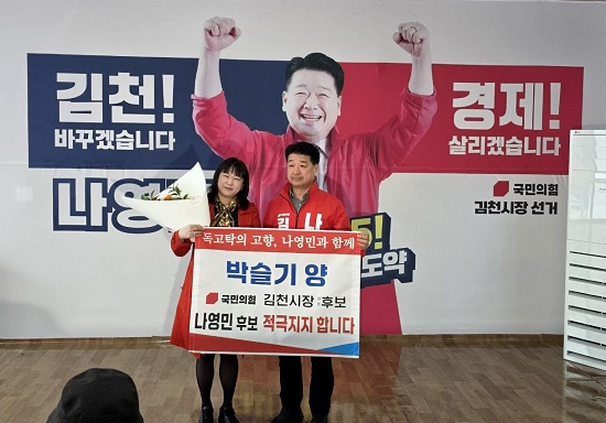 ³ª¿µ¹Î ±èõ½ÃÀå ¿¹ºñÈĺ¸ÀÇ ÈÄ¿øÈ¸ÀåÀÎ ¹Ú½½±â ´ëÇ¥°¡ 16ÀÏ ±èõÀ» ¹æ¹®ÇØ ³ª ¿¹ºñÈĺ¸¿¡ ´ëÇÑ °ø°³ ÁöÁö ÀÔÀåÀ» ¹àÇû´Ù.
