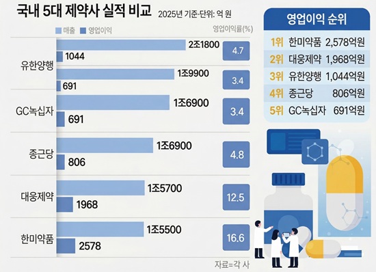 Áö³ÇØ »óÀ§ 5´ë Á¦¾à»ç ÇÕ»ê ¸ÅÃâÀÌ 9Á¶¿ø °¡±îÀÌ ÁøÀÔÇß´Ù. ¸ÅÃâ ±âÁØÀ¸·Î´Â À¯ÇѾçÇàÀÌ 1À§ ¿µ¾÷ÀÌÀÍ 1À§´Â Çѹ̾àǰÀÌ °¡Àå ³ô¾Ò´Ù.
