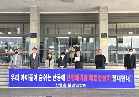 °æ»óºÏµµ ±¸¹Ì½Ã »êµ¿À¾¡¤ÇØÆò¸é ÀÏ´ë¿¡ ÃßÁø ÁßÀÎ ¹Î°£ »ê¾÷Æó±â¹° ¸Å¸³Àå »ç¾÷°ú °ü·ÃÇØ 17ÀÏ ½Ãû»ç ¾Õ¿¡¼­ »êµ¿À¾ ȯ°æ¿¬ÇÕȸ(ÀÌÇÏ ¿¬ÇÕȸ)°¡ ¼³Ä¡ ¹Ý´ë ÀÔÀåÀ» ¹àÈ÷´Â ±âÀÚȸ°ßÀ» ¿­¾ú´Ù.