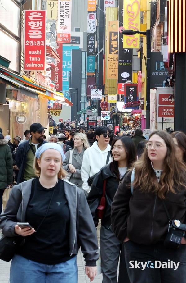 ¡ã Äɵ¥ÇåÀÇ ¿À½ºÄ« ¼ö»ó°ú BTS º¹±Í°ø¿¬À» ¾ÕµÐ °¡¿îµ¥ 17ÀÏ ¼­¿ï ¸íµ¿°Å¸®°¡ ¿Ü±¹Àΰü±¤°´À¸·Î ºÏÀûÀ̰í ÀÖ´Ù. K-ÄÃóÀÇ ¿­Ç³ ¼Ó¿¡ Áö³­ÇØ ¿ª´ë ÃÖ´ÙÀÎ 1,894¸¸ ¸íÀÇ ¿Ü±¹ÀÎ °ü±¤°´ÀÌ ¸íµ¿ µî Çѱ¹ÀÇ ÁÖ¿ä ¸í¼ÒµéÀ» ¹æ¹®ÇßÀ¸¸ç ¿ÃÇØ´Â BTS ÄÄ¹é µîÀÇ È£À縦 ¹ßÆÇ »ï¾Æ ¿¬°£ °ü±¤°´ 2õ¸¸ ¸í ½Ã´ë¸¦ ¸ñÇ¥·Î ¼ºÀå¿¡ ¼Óµµ¸¦ ³»°í ÀÖ´Ù. ÀÌÁ¾¿ø ±âÀÚ ¨Ï½ºÄ«À̵¥Àϸ®