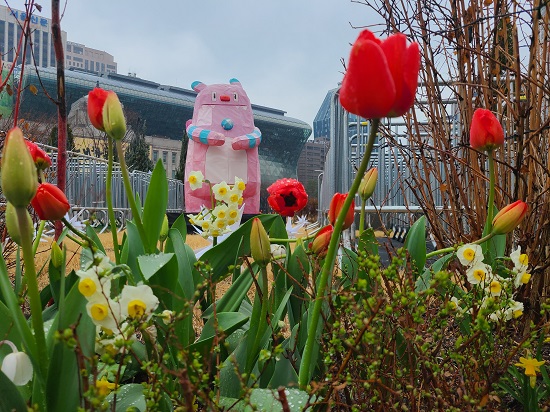 ½Ã¿¡ µû¸£¸é ±¤È­¹® »ï°Å¸®¿¡¼­ ½Ãû ±³Â÷·Î¿¡ À̸£´Â ¾à 1km ±¸°£¿¡ Æ«¸³, ²É¾ç±Íºñ, »ç°è Àå¹Ì µî ºÓÀº °è¿­ÀÇ ²É 46Á¾, 3¸¸2860º»ÀÌ ½ÄÀçµÆ´Ù. ÀÌ´Â BTSÀÇ Á¤±Ô 5Áý '¾Æ¸®¶û'ÀÇ ÇÙ½É Ä÷¯ÀÎ ºÓÀº»öÀ» ¹Ý¿µÇÑ °ÍÀÌ´Ù.