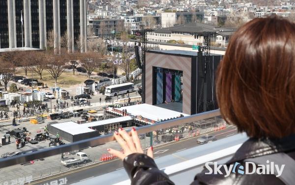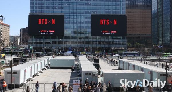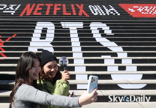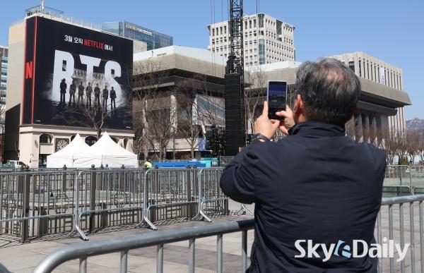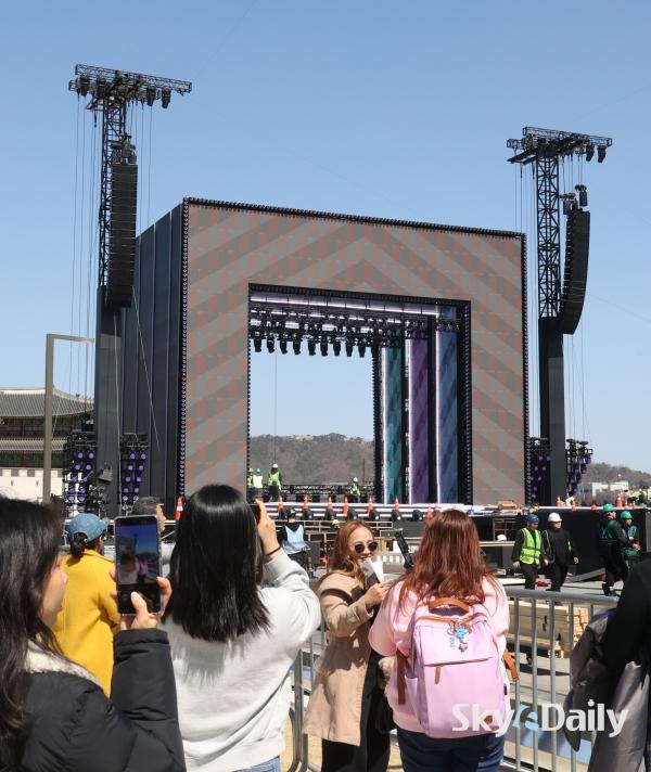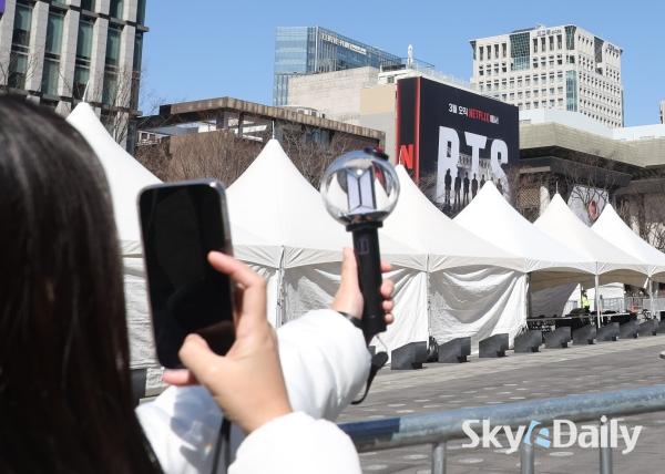 ¡ã ¹æÅº¼Ò³â´Ü(BTS)ÀÇ ¼­¿ï ±¤È­¹®±¤Àå ÄÄ¹é °ø¿¬À» ¾ÕµÐ 19ÀÏ ¿Ü±¹ÀÎ ÆÒµéÀÌ ¼­¿ï Á¾·Î±¸ ¼¼Á¾¹®È­È¸°ü °è´Ü¿¡ Á¶¼ºµÈ BTS ·¦ÇÎ ¾Õ¿¡¼­ »çÁøÀ» Âï°í ÀÖ´Ù. ¹æÅº¼Ò³â´ÜÀº 21ÀÏ ¼­¿ï ±¤È­¹® ±¤Àå¿¡¼­ ÄÄ¹é °ø¿¬ ¡®BTS ÄÄ¹é ¶óÀ̺ê: ¾Æ¸®¶û(ARIRANG)¡¯À» °³ÃÖÇÑ´Ù. ¹®Ã¼ºÎ´Â À̹ø °ø¿¬À» Çѱ¹ÀÇ ¿ª»ç¿Í ¿¹¼ú, ¹®ÇÐÀÌ ¾î¿ì·¯Áö´Â Á¾ÇÕÀûÀÎ ¹®È­ ÃàÁ¦ÀÇ ÀåÀ¸·Î È®ÀåÇØ ´ëÇѹα¹ÀÇ ¹®È­Àû À§»óÀ» ³ôÀ̰í KÄÃó °ü·Ã °ü±¤°´ À¯ÀÔ¿¡ ±â¿©ÇÒ °ÍÀ¸·Î ±â´ëÇϰí ÀÖ´Ù.  ¹Ú¹Ì³ª ±âÀÚ ¨Ï½ºÄ«À̵¥Àϸ®