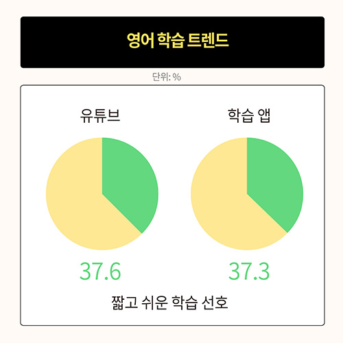 ½ÃÀåÁ¶»ç±â°ü ¿¥ºê·¹ÀÎ Æ®·»µå¸ð´ÏÅÍ Á¶»ç¿¡ µû¸£¸é ±¹¹Î ´ë´Ù¼ö´Â ¿µ¾î¸¦ °¡Àå °æÀï·Â ÀÖ´Â ¿Ü±¹¾î·Î ÀνÄÇϰí, 10¸í Áß 9¸íÀº ¿µ¾î¸¦ ÀßÇÏ¸é ±âȸ°¡ ¸¹¾ÆÁø´Ù°í ´äÇß´Ù. ±×·¯³ª ¿µ¾î ÇнÀ Çʿ伺¿¡ °ø°¨Çϸ鼭µµ ½ÇÁ¦ ÇнÀ ½ÇõÀ²Àº 32.2%¿¡ ±×ÃÆ´Ù. ½Ã°£ ºÎÁ·°ú ³·Àº Ȱ¿ëµµ, ½Ç·Â Çâ»ó ü°¨ ¾î·Á¿òÀÌ ÁÖ¿ä ÀÌÀ¯·Î ²ÅÇû´Ù. ÃÖ±Ù¿¡´Â À¯Æ©ºê¿Í ÇнÀ ¾ÛÀ» Ȱ¿ëÇÑ °£Æí ÇнÀÀÌ È®»êµÇ°í ÀÖ´Ù.